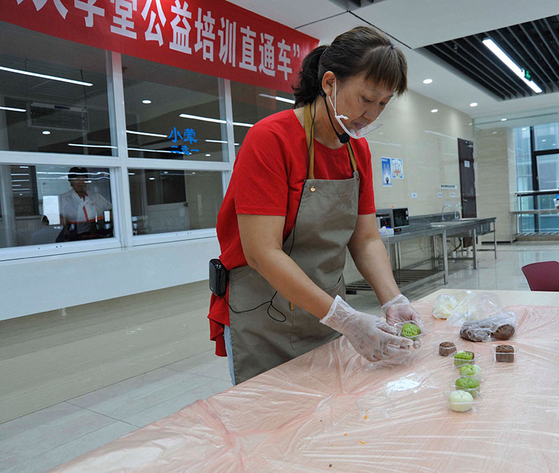 期間,總工會將“工會大學(xué)堂公益培訓(xùn)直通車”活動帶到公司,選派專業(yè)老師進(jìn)行授課,教授員工月餅制作技能。
